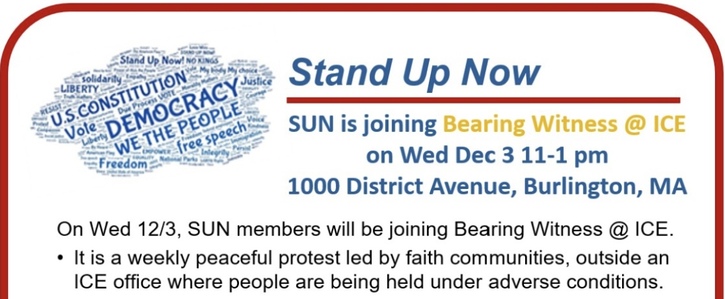 Stand Up Now by standing up for our immigrants and against the cruel treatment by ICE. Come hold our banner, bring your own sign to this strong and peaceful protest. Meet at 11am by the big tree near the organizers in front of the ICE detention center.