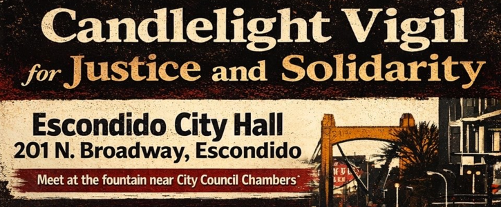 Our community in Escondido is grieving. What has happened in Minneapolis has shaken us to our core — the loss of life, the violence, the fear, and the cruelty inflicted on our neighbors in another city reverberate all the way here at home. We refuse to look away. We refuse to become numb. We refuse to accept a world where human beings can be terrorized, detained, or killed in our streets.