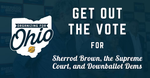 With the election only 30 days away, we are in the final stretch! Join us to Get Out the Vote for Ohio Democrats by Canvassing for Senator Brown, Congresswoman Sykes, and other down ballot candidates as well as the Supreme Court Judges.