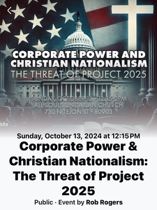 Come and learn about the threat of Christian Nationalism along with Project 2025, and the unique ties to Colorado Springs and El Paso County.
