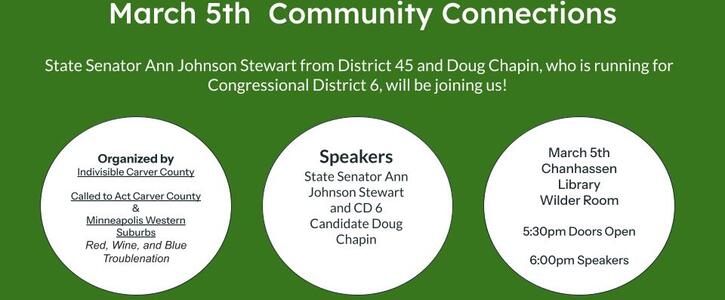Ann Johnson Stewart who is running for another term as Minnesota senator for District 45 and Doug Chapin who is running to unseat Tom Emmer in congressional district 6 will be joining us to talk about November elections.