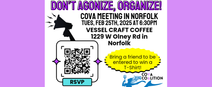 Join us for our monthly COVA Convos. We will talk about what you can do to get involved in community advocacy, how to help win elections and how to talk to friends and family about the issues. Support a local business by enjoying a cup of coffee or a glass of wine while we chat!