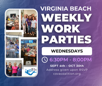 Join COVA Coalition for weekly work parties in Virginia Beach! We will alternate locations every other Wednesday. We will be working on a multitude of things including, but not limited to, postcard writing, text banks, phone banks, packet building for down ballot races, and putting together signs.