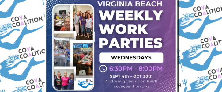 Join COVA Coalition for weekly work parties in Virginia Beach! We'll alternate between the VBEA Office and Missy's campaign office. We will be working on a multitude of things including, but not limited to, postcard writing, text banks, phone banks, packet building for down ballot races, and putting together signs.