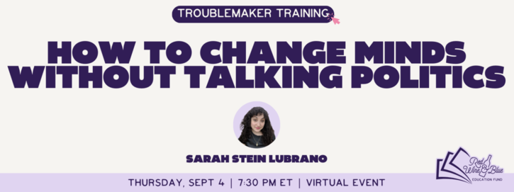 Join us on September 4 at 7:30PM ET to hear from Dr. Sarah Stein Lubrano, author of Don't Talk Politics, as she shares how to break through polarization, build trust, and turn everyday conversations into meaningful change.