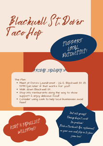 Meet at Dora's Laundromat at 26 E Blackwell at 5:00, stop at restaurants along the way to show support for the wonderful restaurants in Dover!