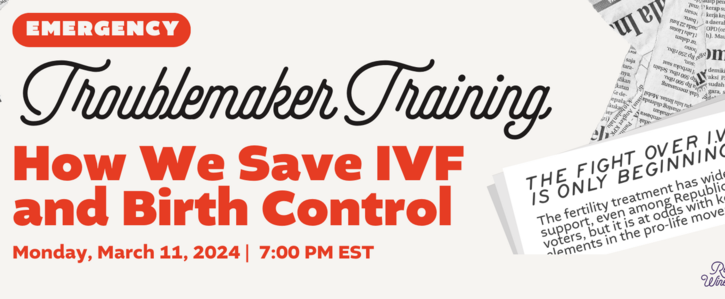 every single one of us either has used IVF or birth control, or know women who do. We have to stand up! So I’m rallying my friends to a special Emergency Troublemaker Training, and I want you there with me.