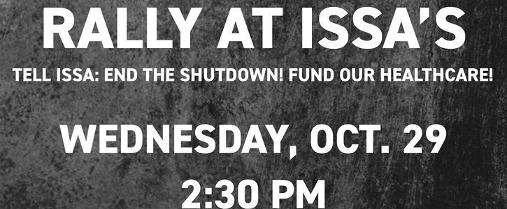 Join us to tell Rep. Darrell Issa that San Diego demands OPENING THE GOVERNMENT AND HEALTHCARE. Our workers and our most vulnerable neighbors should not be used as bargaining chips.