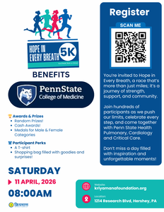We received an invitation to set up a tent/table at the 5k Run/Walk Race To Benefit Penn State College Of Medicine. The race start and end will be in the parking lot at the Hershey Center For Applied Research.