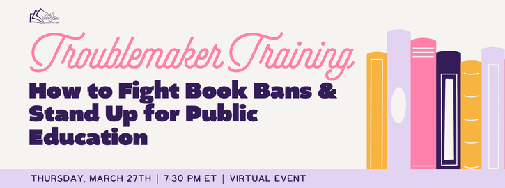 "Ready to stand up to extremists causing chaos at school board meetings? Want to defeat book bans and stand up against policies that negatively impact our schools and students? Join us to learn how to effectively build local support in your community and the tactics you can use for success. You are the majority -- make sure your voices are heard!"