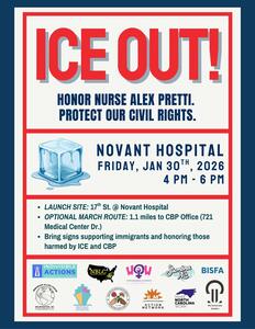 The main staging area of the protest will be on 17th St. at Novant Hospital, in solidarity with the National Nurses Union's week of action after the murder of Minneapolis nurse Alex Pretti.
