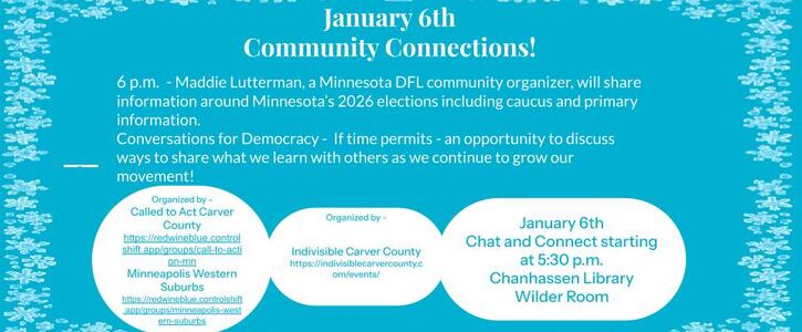 6 p.m. - Maddie Lutterman, a Minnesota DFL community organizer, will share information around Minnesota’s 2026 elections including caucus and primary information.