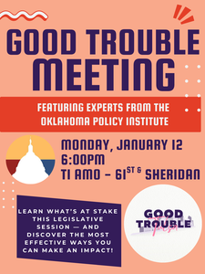 Join us as we dig into what’s ahead for the 2026 legislative session, how everyday Oklahomans can influence the process, and where our collective energy can make the biggest impact. This is the perfect meeting to plug in, get informed, and gear up for meaningful action.