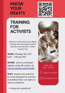 WHAT: At this time in history, it is imperative for activists and the general public to prepare as much as possible for what this administration is bringing; to have the confidence to exercise our rights, and document when they are being trampled on, both for ourselves, and our communities. This starts with knowing clearly what those rights are in the different situations we may find ourselves in.