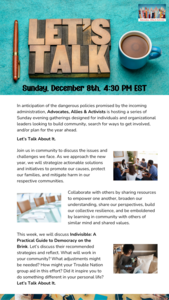 Connect with like-minded people trying to find the best way to protect our communities and defend our democracy. Together, we can prepare to enter the new year with clarity, focus, a plan, and a collaborative community for support moving forward.