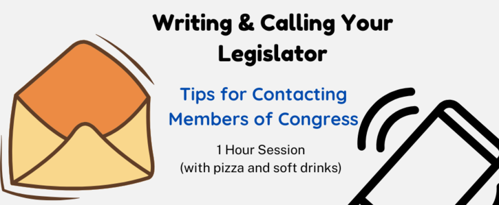 Learn some tips and tricks for contacting your legislators in this one hour session, with pizza and soft drinks included.