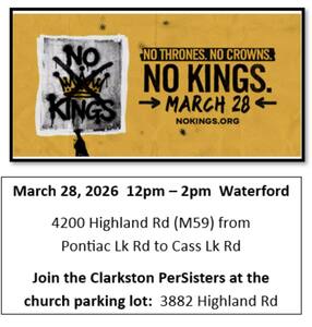 Clarkston PerSisters is joining Waterford Dems and Friends for the next No Kings Rally!