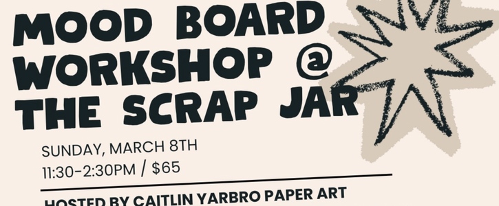 Sunday, March 8th, from 11:30 a.m. to 2:30 p.m. The Scrap Jar is hosting the "Mood Board Workshop" at the very cute and fun Scrap Jar!