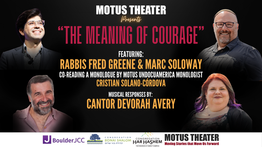 Motus Theater, with Congregation Har HaShem and Congregation Bonai Shalom, present a performance of Motus UndocuAmerica monologue “The Meaning of Courage” by Cristian Solano-Córdova and co-read by Rabbis Fred Greene and Marc Soloway with musical responses from Cantor Devorah Avery.