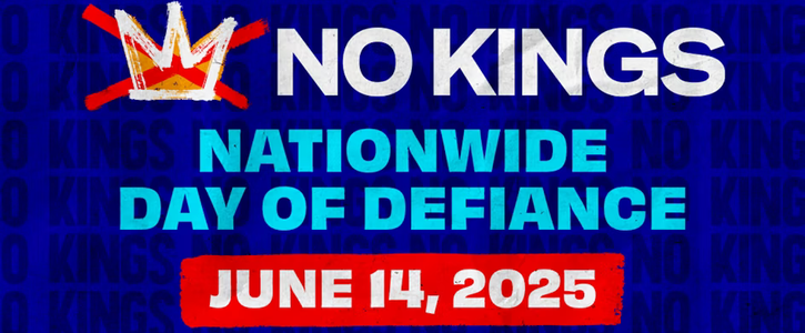 In America, we don’t put up with would-be kings. NO KINGS is a national day of action and mass mobilization in response to increasing authoritarian excesses and corruption from Trump and his allies. We’ve watched as they’ve cracked down on free speech, detained people for their political views, threatened to deport American citizens, and defied the courts. They’ve done this all while continuing to serve and enrich their billionaire allies.