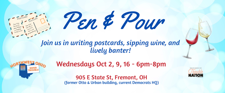 Join us weekly on Wednesdays from 6–8 PM for a fun evening of postcard writing for our candidates. Sip some wine, connect with great company, and make a difference together. We can’t wait to see you there! 905 E. State Street (former Otto and Urban building).