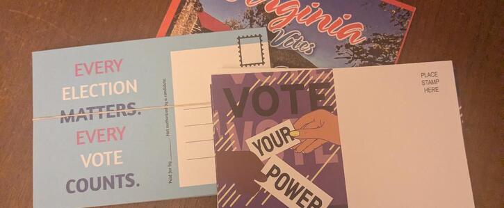 Bring your favorite pens and some postcard stamps. If you're not able to write, you're welcome to come anyway and we'll give you another job that will help us get it all done.