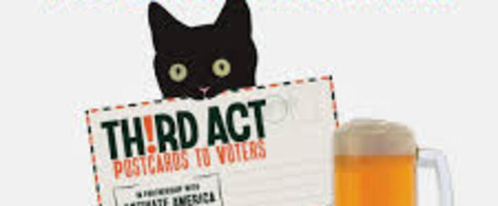 Come get together with us on a weeknight. We'll be writing postcards a bit, grabbing a bite and a drink, and relaxing together.