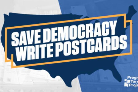 Hey ladies-let's write some postcards and see if we can't save democracy.