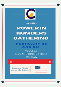 Union County Troublemakers: It’s time to gather! Please join us at VegGeez In Waxhaw on February 26 at 6:30 and bring your friends or neighbors who are Like Thinkers. We have work to do!