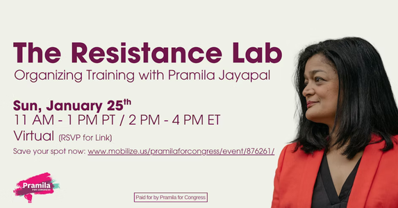 Pramila Jayapal's JANUARY Resistance Lab: Virtual Organizing Training