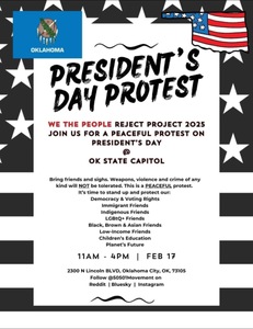 Join us at the 50501 President's Day peaceful protest tomorrow (Feb 17) at the Oklahoma State Capitol!