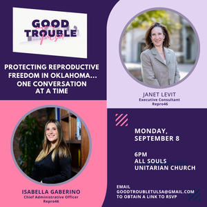 Join us for a compelling discussion led by Janet Levit and Isabella Gaberino of Repro46 about protecting reproductive freedom in Oklahoma. It's all about listening, sharing and engaging with one another, one friend at a time.