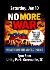Join us as we show our president we stand against regime change and against wars for profit! Bring a sign, bring a friend.