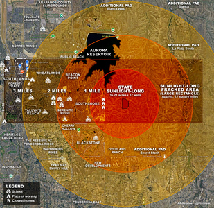 - Aurora Reservoir, our city’s primary drinking water source, is just 0.6 miles from the proposed Sunlight-Long mega well pad. Sunlight-Long drilling is not only proposed next to, but also below, this vital Aurora water supply. One accident or leak, and we could be living through our own Erin Brockovich disaster. Do we really want to gamble with the water our children drink every single day?