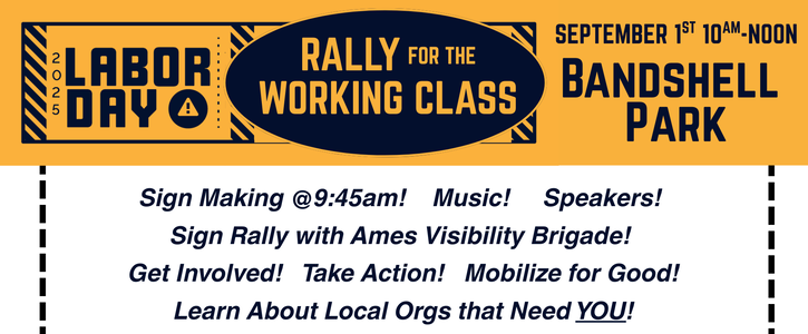 Join the League of Women Voters, Democracy Every Day, and Indivisible Ames this Labor Day for a Rally for the Working Class!