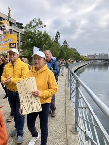 Share the plan with friends, also the bilingual flyers (English and French, German or Dutch available so far) to interest more people to join in with you in person, and join us in general, wherever they are most worried about democracy and freedom.