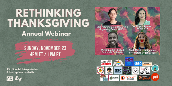 "Join us to challenge the legacy of the ‘thanksgiving’ holiday. We will discuss how to collectively work together to confront colonialism and defend Mother Earth.