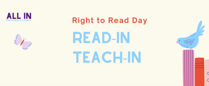 From 3:30pm ‘til 5, we’ll be reading in community. If the weather permits, we can sit outside. The Unitarian Universalist Fellowship of Central Michigan will be open for those who prefer to sit inside.
