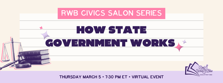Join us for RWB Civics Salon: How State Government Works to better understand where real power lies and how change actually happens close to home. We'll break down what the state government really does, who’s calling the shots, and why statehouses have become ground zero for fights over democracy, rights, and equality.
