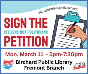 We will be at Birchard Public Library on March 11, 5pm-7:30pm with petitions from various counties ready for your signature! We hope to see you there!