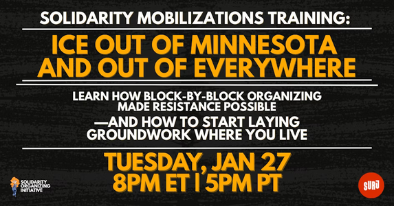 Join us for Solidarity Mobilizations, a powerful two-part training series hosted by Showing Up for Racial Justice (SURJ) and Solidarity Organizing Initiative (SOI). We’ll break down the political moment we’re in, the authoritarian playbook driving these attacks, and the role those of us who are white and/or citizens can play in pushing back effectively and strategically.