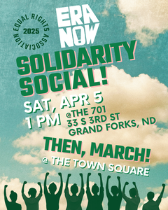 Join ERA NOW for a Solidarity Social on April 5 at 1 P.M. at The 701 in downtown Grand Forks, ND. We’ll be making equality bracelets, writing and sending protest postcards, and having good conversations with friends. Refreshments will be provided. Then, head to Town Square to march in the Rise Up Rally.