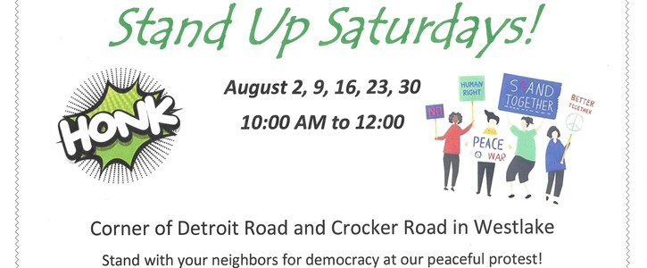 STAND UP Saturdays in Westlake is organized by a group of concerned citizens like yourselves who believe in the power and community building of peaceful protests.