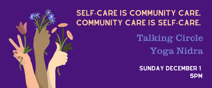 You are welcome to come for the talking circle and leave before yoga nidra. If you do wish to stay for the second half of the evening, you may want to bring a journal, a writing utensil, a yoga mat, a blanket, and a pillow. This is a donation-based practice, and all are welcome.