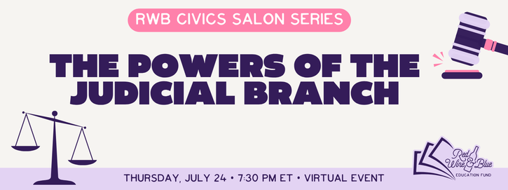 With norms crumbling and the other branches of government failing to uphold their duties, the courts are increasingly the last line of defense for our democracy. But what gives them that power and who keeps them in check? Join us for the next RWB Civics Salon as we dive into the judicial branch. We will learn how it’s set up, what powers it holds, and how it fits into our system of checks and balances. We’ll get to the heart of what the courts are actually supposed to do and why it matters now more than ever.