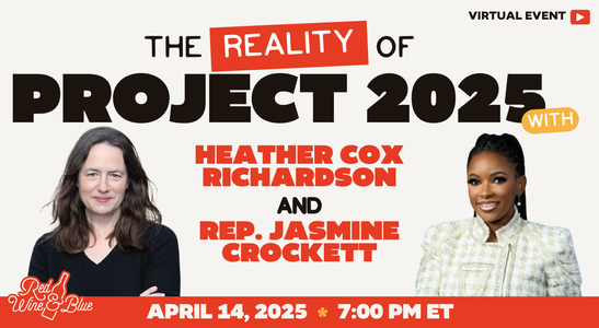 Join us on the two-year anniversary of Project 2025’s launch for can’t-miss conversations with two of our favorite BADASS women—historian Heather Cox Richardson and Congresswoman Jasmine Crockett. This moment isn’t just about understanding the threat—it’s about how we fight back with everything we’ve got. Project 2025 is no longer just a radical plan on paper. Its ideas are already surfacing in Trump’s policies and shaping the agenda of extremist lawmakers. This event will break down exactly how Project 2025 is being implemented—and more importantly, what you can do about it. Learn about our new first-of-its kind tracking tool to help you keep up with how Project 2025 is being implemented and how it is impacting your family and your community. It's time to get loud and spread the word. We will fight back: together! See you there! https://redwine-blue.zoom.us/webinar/register/WN_s3eMWmDDTOGMpldcneYjHg