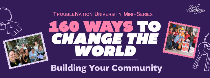 "If you've been looking for concrete ways to channel your energy, this is it! We’re doing a special mini-series of TroubleNation University classes to introduce 160 Ways to Change the World Without Losing Your Sh*t, a guide is packed with 160 actionable ideas for making a difference in your community. In our first of four events, Building Your Community, we will help you explore the web pages, identify valuable resources, and commit to action steps using the guide's offerings for inspiration around this topic. Leaders and group members are all welcome to attend!"
