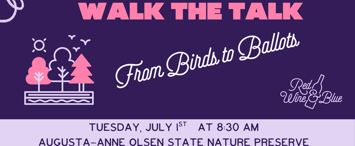 Join Amy with Red, Wine & Blue for a nature walk at Augusta-Anne Olsen State Nature Preserve. We'll meet at 8:30 to try to beat the heat: let's vent while getting a little exercise!