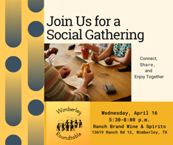 Join us on Wednesday, April 16, from 5:30-8:00 p.m. at Ranch Brand Wine & Spirits (13619 Ranch Rd 12, Wimberley, TX). Let’s connect, share stories, and talk about what we're passionate about in a relaxed, social setting. It’s a casual come-and-go event, so drop by anytime!