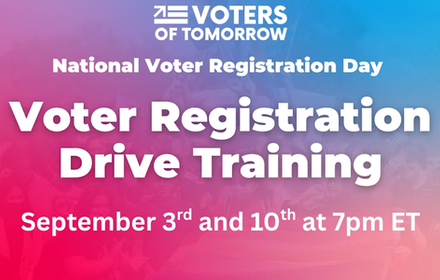 Voters of Tomorrow: Voter Registration Drive TrainingPast eventOctober 9, 20251 attendee -